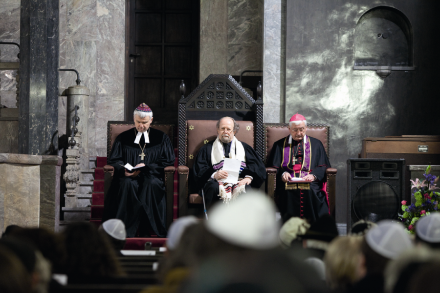 Die Christlich-Jüdische Gemeinschaftsfeier in der Augsburger Synagoge wurden gestaltet von Landesbischof Friedrich, Landesrabbiner Brandt und Bischof Mixa (v.l.n.r.)