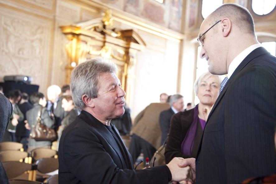 Augsburgs OB Gribl heißt Daniel Liebeskind im Goldenen Saal des Rathauses willkommen
