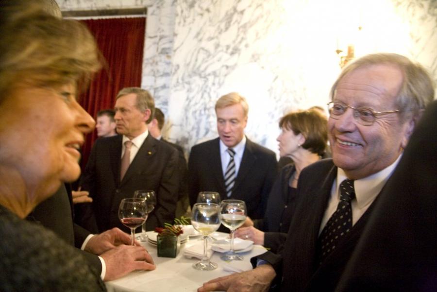 Charlotte Knobloch und Erich Zenger in freundschaftlichem Gespräch; im Hintergrund Bundespräsident Köhler und Bürgermeister von Beust