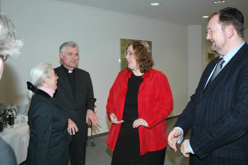 Rabbinerin Gesa Ederberg und Rabbiner Walter Homolka (re.) im Gespräch mit katholischen Geistlichen