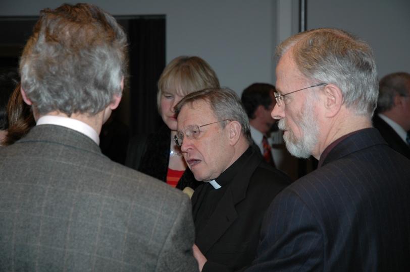 Walter Kardinal Kasper im Gespräch mit Besuchern; rechts von ihm hört der katholische Theologe Hans-Hermann Henrix aufmerksam zu