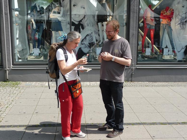 DKR-Vorstandsmitglied Dr. Christoph Münz im Gespräch mit einer Katholikentagsbesucherin