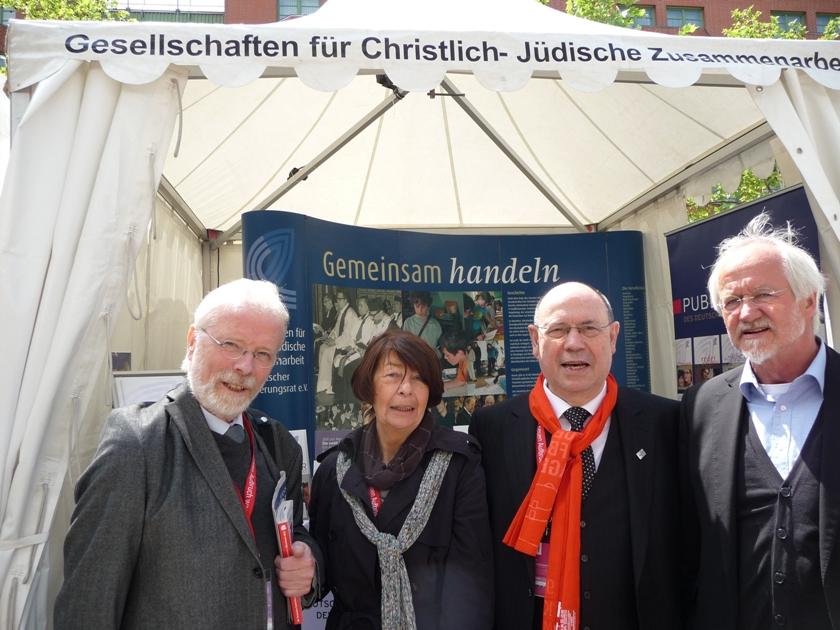 Besuch von guten Freunden (v.l.n.r.): Hans-Hermann Henrix, DKR-Präsidentin Dr. Eva Schulz-Jander, Präses Nikolaus Schneider, DKR-Generalsekretär Rudolf Sirsch