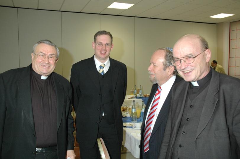 Sie verstehen sich gut. Karl Kardinal Lehmann, Rabbiner Jonah Sievers, Rabbiner Brandt und Bischof Jaschke