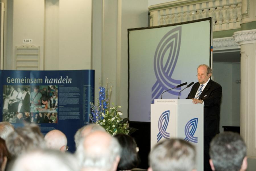 Der jüdische Präsident des DKR, Landesrabbiner Henry G. Brandt, begrüßt die Geburtstagsgäste