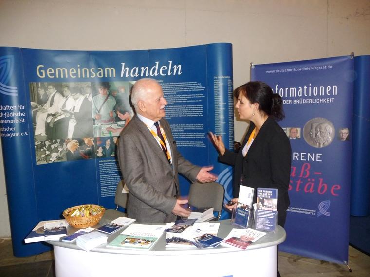 CDU-Parteitag in Karlsruhe, 2010: Annika Böhm vom Forum Junge Erwachsene (FJE) im Gespräch mit dem Vorsitzenden der Berliner DIG Feilcke