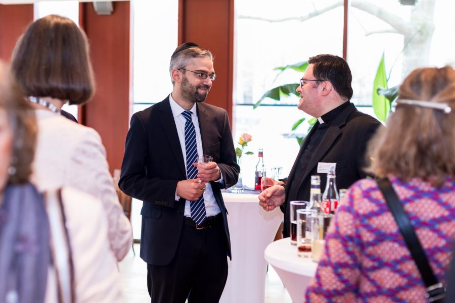 Alexander Nachama (li.), Landesrabbiner der Jüdischen Landesgemeinde Thüringen, im Gespräch mit DKR-Vorstandsmitglied Pater Elias H. Füllenbach O.P.