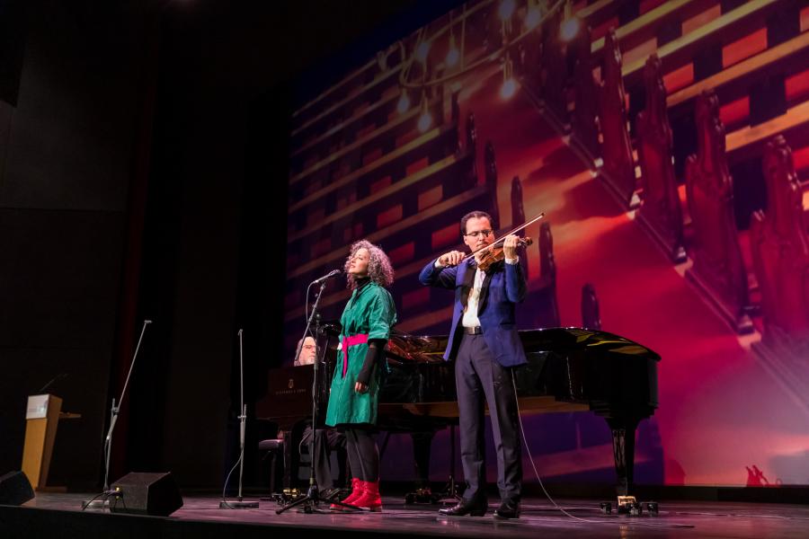 Musikalische Begleitung der Eröffnungsfeier durch Alan Bern (Klavier und Akkordeon), Sveta Kundish (Gesang) und Mark Kovnatsky (Geige)