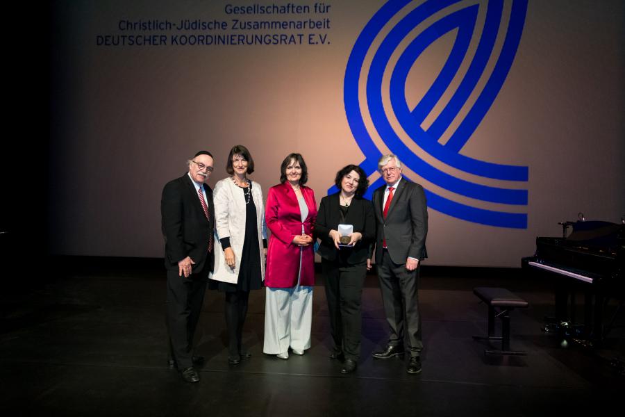 v.l.n.r.: Rabbiner Prof. Dr. Andreas Nachama, jüdischer Präsident des DKR, Dr. Margaretha Hackermeier, katholische Präsidentin des DKR, Illona Klemens, Generalsekretärin des DKR, Dr. Anja Siegemund, Direktorin der "Stiftung", Friedhelm Pieper, evangelischer Präsident des DKR