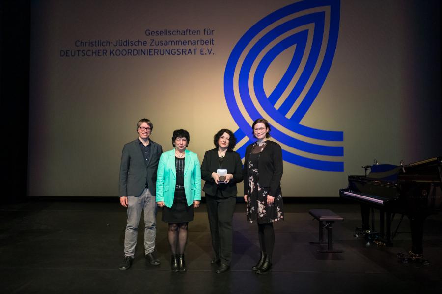 v.l.n.r.: Eckehart Schmidt, katholischer Vorsitzender der GCJZ Thüringen, Irina Levin, jüdische Vorsitzende der GCJZ Thüringen, Dr. Anja Siegemund, Direktorin der "Stiftung", Julia Braband, evangelische Vorsitzende der GCJZ Thüringen