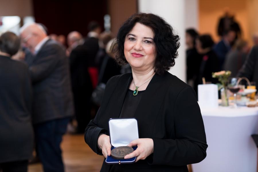 Die Direktorin der "Stiftung Neue Synagoge Berlin - Centrum Judaicum" Dr. Anja Siegemund mit der Buber-Rosenzweig-Medaille in Händen