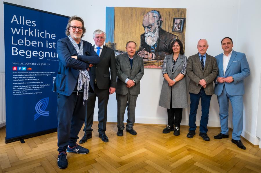 Mike Kuhlmann, Pfarrer i. R. Friedhelm Pieper, Prof. h.c. Dr. Abi Pitum, Pfarrerin Ilona Klemens, Manfred de Vries (Vorsitzender der Jüdischen Gemeinde Bad Nauheim), Klaus Kreß (v.l.n.r.)