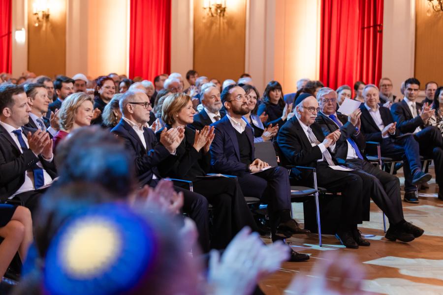 Igor Levit eingerahmt von Ministerpräsidentin Malu Dreyer (li.) und dem jüdischen Präsidenten des DKR, Rabbiner Andreas Nachama (re.)