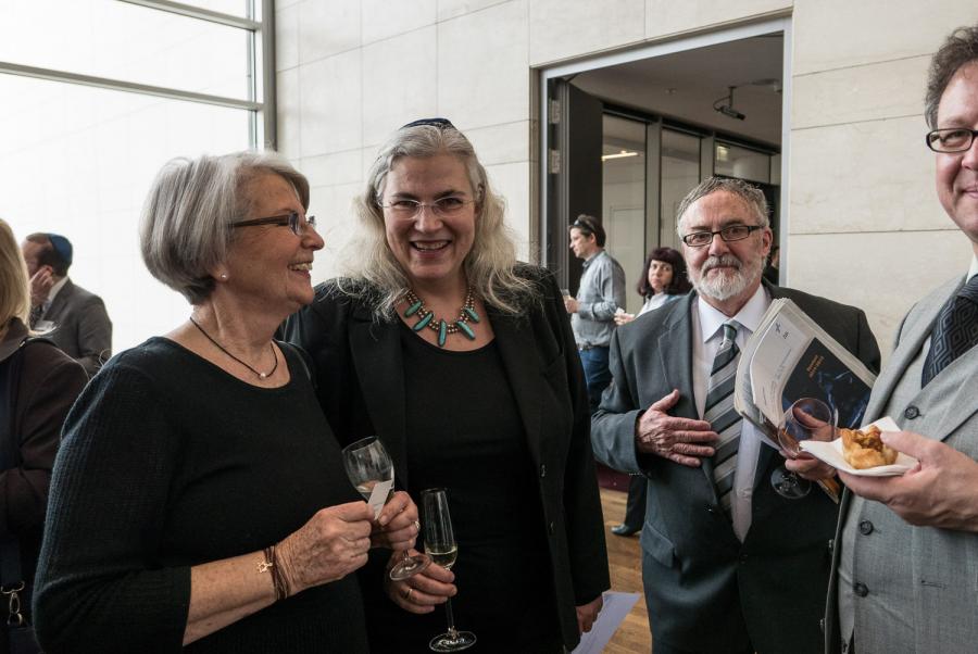 Rabbinerin Elisa Klapheck (mi.) im Gespräch mit anderen Gästen